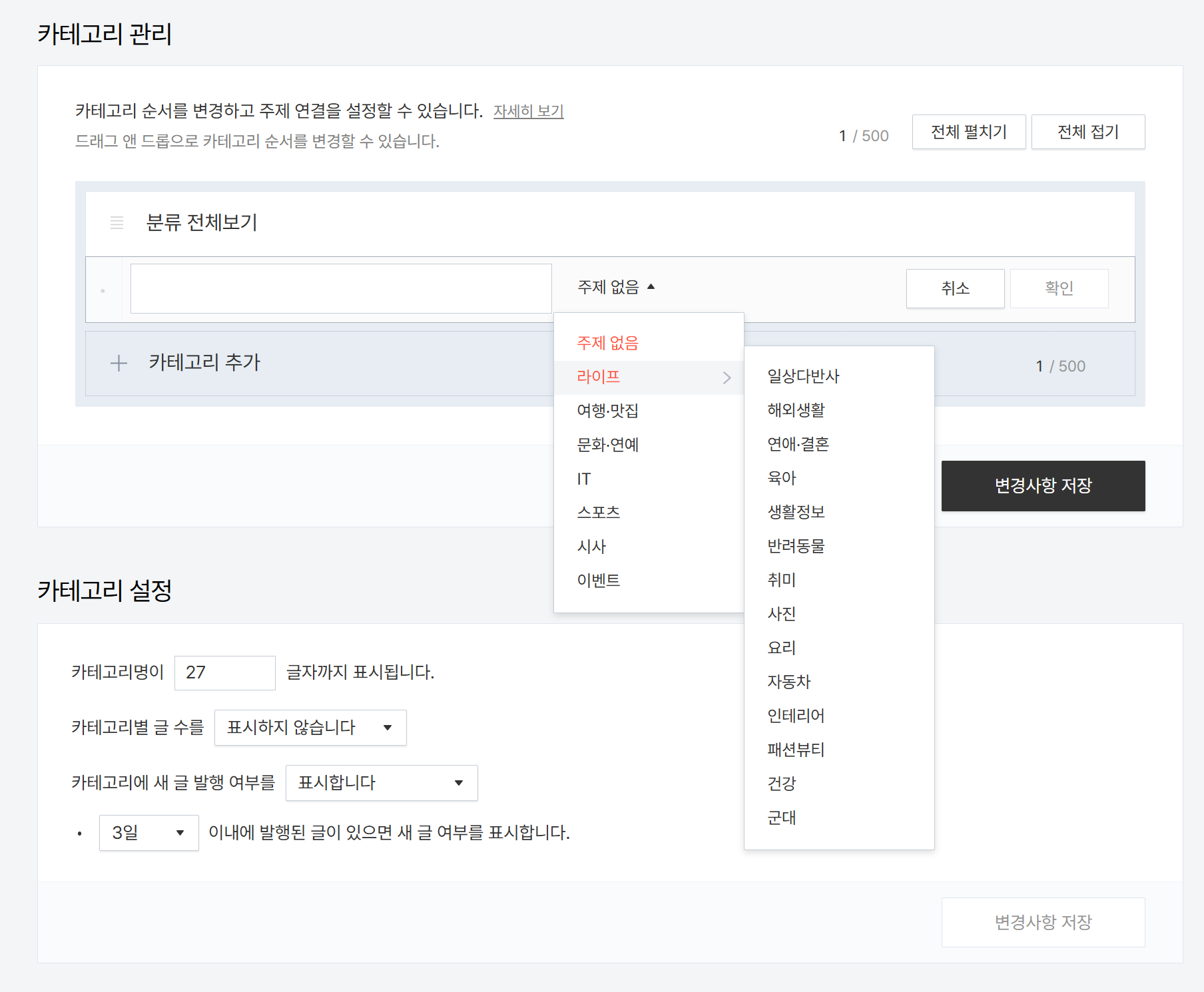 - 예: 건강 블로그 → ‘운동기록’, ‘식단’, ‘영양제 후기’, ‘건강 정보’